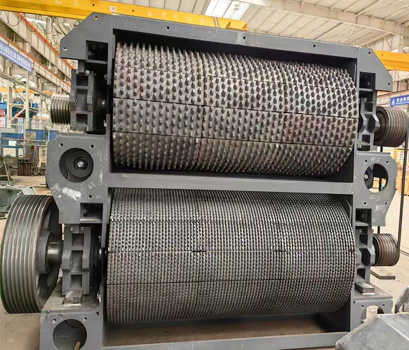 โ€‹Primary Crushing Stage:โ€‹โ€‹ The top two rolls are set with a larger gap and often feature larger teeth or corrugations. Their primary function is to break down large feed material (up to 300mm) into a coarse-to-medium product through powerful compression and shear.